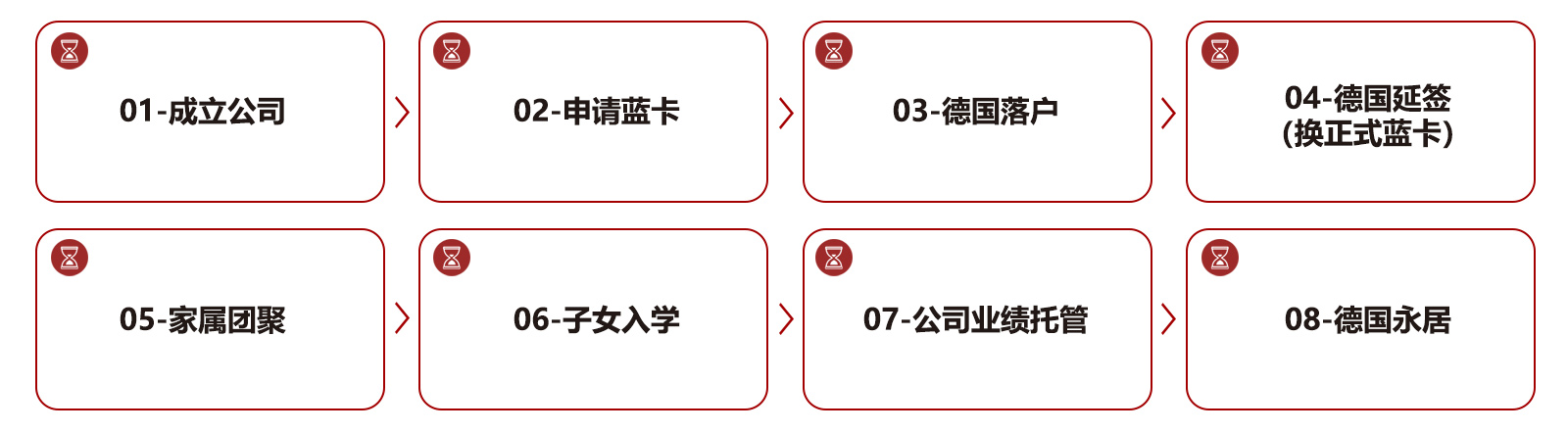 于2012年8月1日生效的《外国人居留法》第19a条中明确约定持蓝卡居留德国,最快 21个月获得德国永久居留权;同时,在家属团聚方面有极其优惠的措施