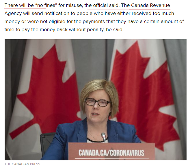 所有申请都需要申领者提交社会保险卡号码(SIN),在明年提交报税表时,申领者必须申报所有收入,政府有能力抽出做假虚报人士。